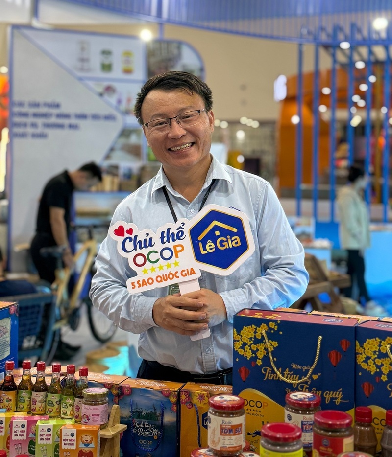 Gian hàng trưng bày các sản phẩm OCOP 5 sao của Lê Gia thu hút khách thăm quan, mua sắm. Ảnh: Lê Anh