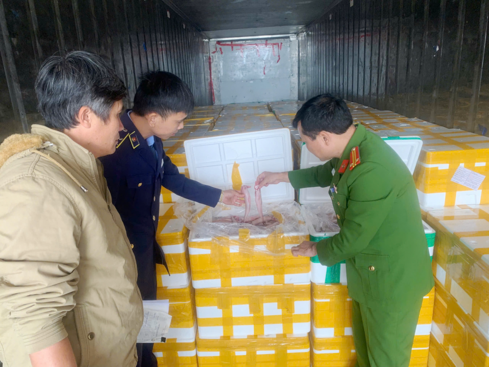 Lực lượng chức năng phát hiện trên xe chở thực phẩm là cá khoai ướp lạnh, đóng trong 271 thùng xốp với tổng khối lượng 7.046 kg