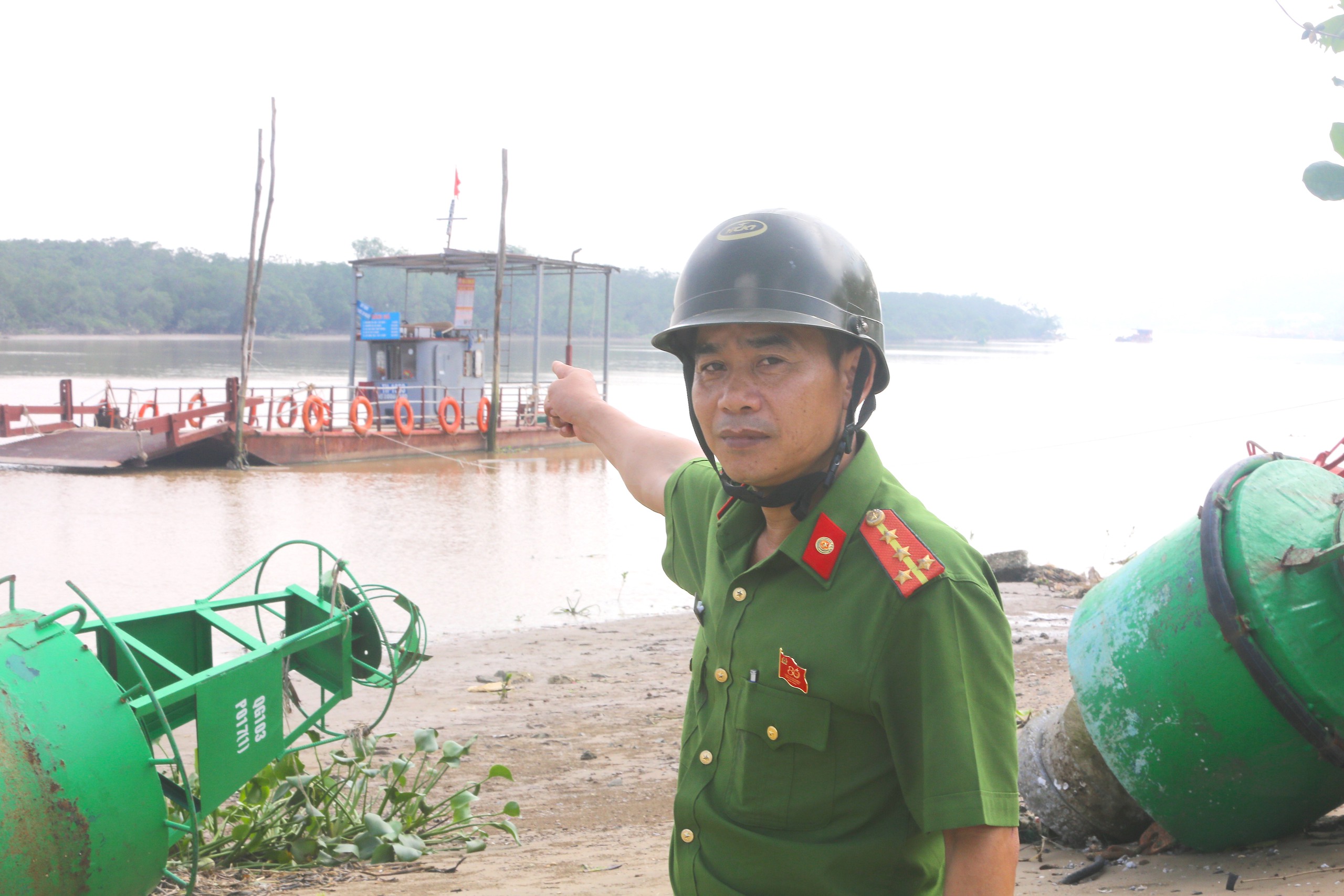 Công an xã Hoằng Tiến giám sát tại bến phà Hoằng Yến sau khi tạm dừng hoạt động.
