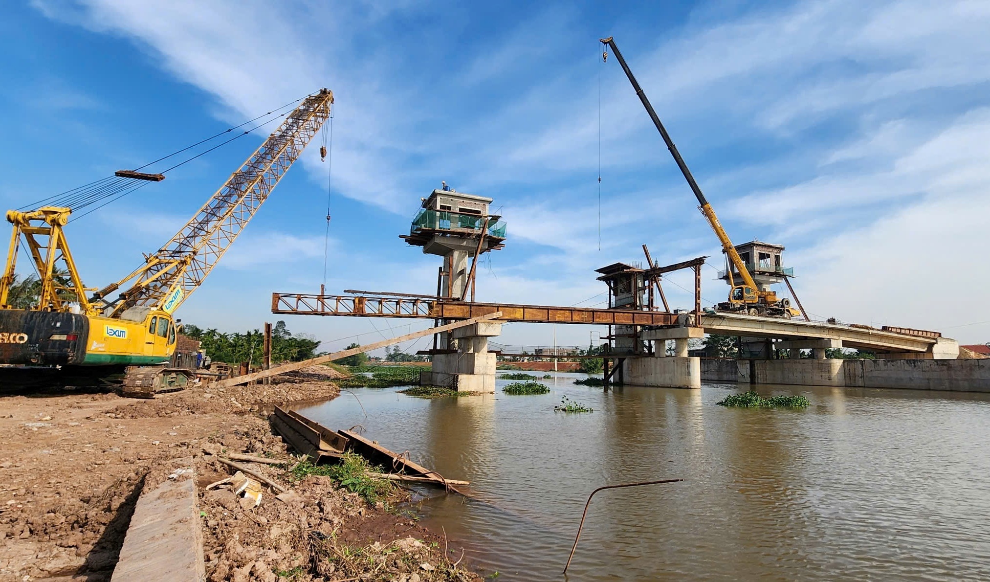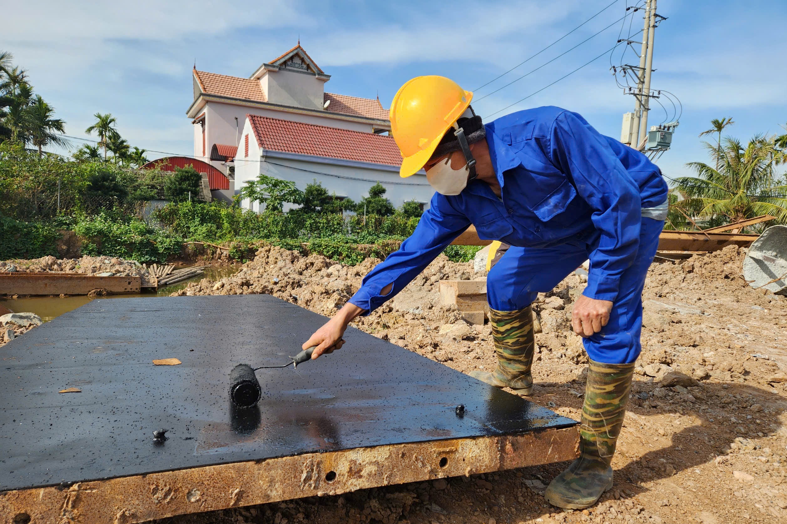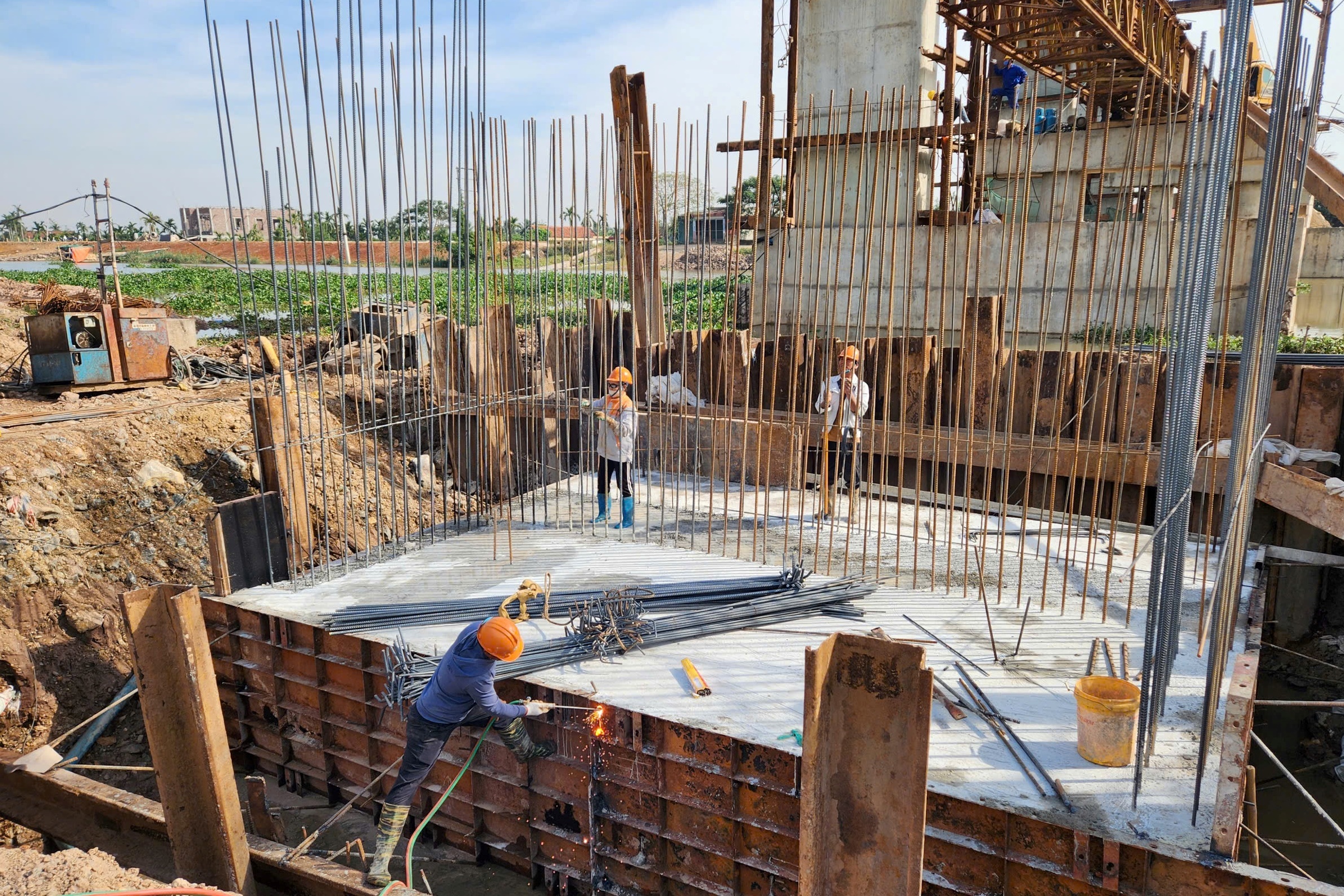 Anh Mai Văn Lương, công nhân thi công của nhà thầu HDC chia sẻ: Để đảm bảo tiến độ cấp trên đề ra, chúng tôi đã bố trí các tổ luân phiên tăng ca, tăng kíp. Có thời điểm công trường có 30 công nhân làm việc và chia làm nhiều tổ thi công các hạng mục.