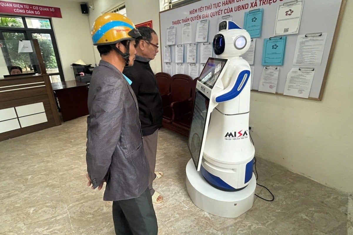 Những ngày qua, người dân khi tới Trung tâm hành chính công của xã Triệu Sơn (Thanh Hóa) vô cùng thích thú trải nghiệm việc sử dụng, trò truyện, yêu cầu robot được trang bị AI hướng dẫn thực hiện các thủ tục hành chính.