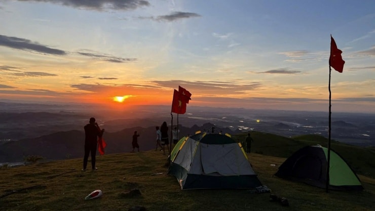 Du khách cắm trại qua đêm trên đỉnh núi để được "săn" mây vào sáng sớm. Ảnh: Lương Thị