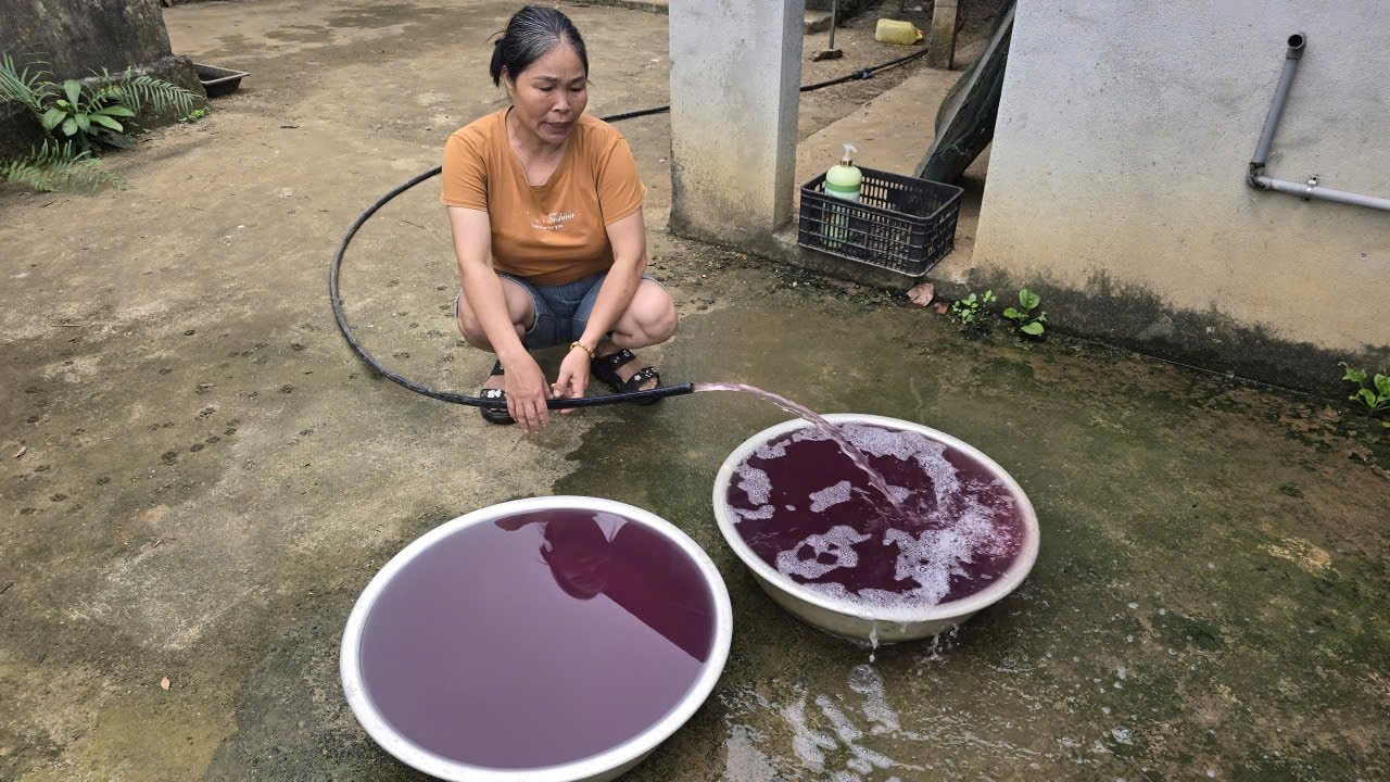 Tại gia đình bà Dương Thị Dung (SN 1975), sinh sống tại địa phương từ năm 1995, trước đây sử dụng nước giếng đào, khoảng 4 năm gần đây chuyển sang dùng giếng khoan cho sinh hoạt hằng ngày. Hiện tượng nước đổi màu khiến gia đình bà và nhiều hộ dân lân cận lo ngại về nguy cơ ảnh hưởng đến sức khỏe.