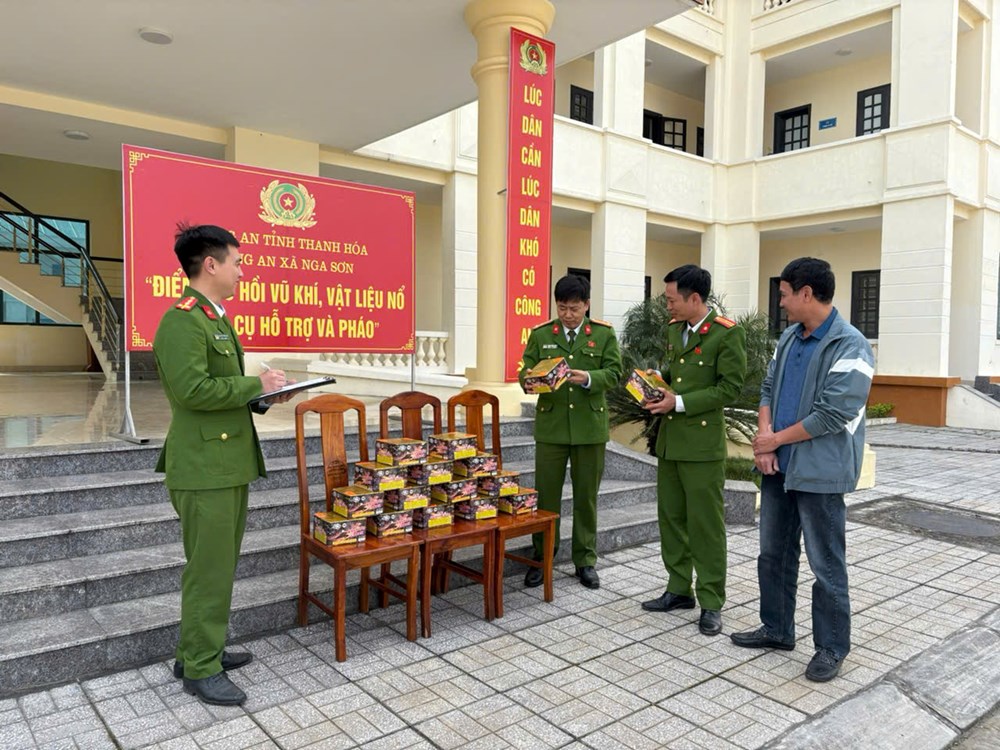 Ở chiều tích cực, thông qua công tác nắm tình hình, tuyên truyền, vận động nhân dân chấp hành nghiêm các quy định của pháp luật, vừa qua Công an xã Nga Sơn đã vận động anh Nguyễn Khắc Thơm (sinh năm 1977, trú thôn Yên Khoái) tự giác giao nộp 30,4kg pháo hoa nổ.