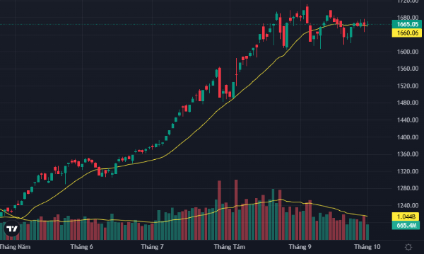 VN-Index đi ngang hẹp phiên thứ 5 liên tiếp với thanh khoản giảm sốc.