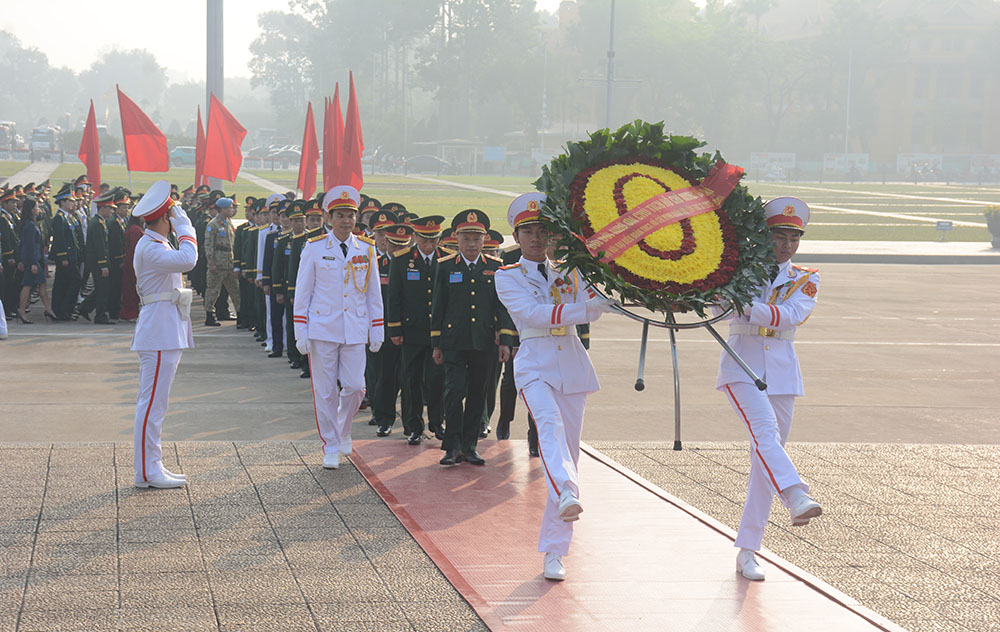 Lãnh đạo Tổng cục Chính trị, các đại biểu và đại diện tuổi trẻ Quân đội dâng hoa, vào Lăng viếng Chủ tịch Hồ Chí Minh.