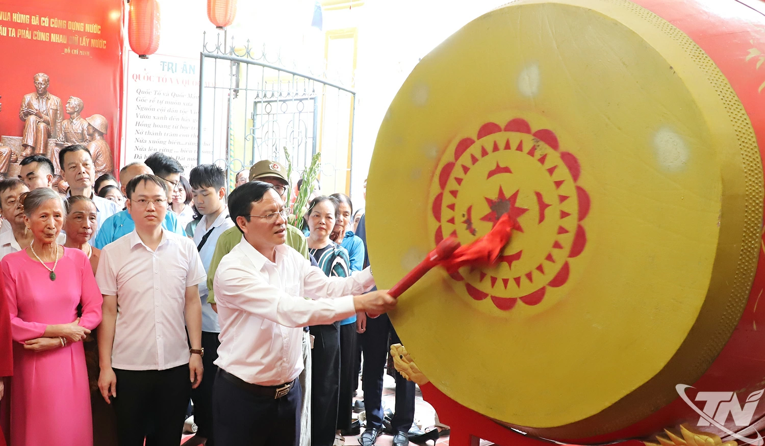 Lãnh đạo phường Phan Đình Phùng thỉnh trống khai lễ.