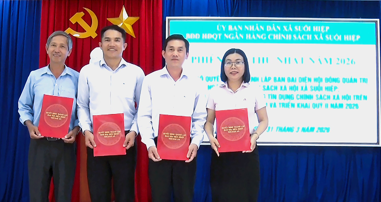 Ngày 31-3, UBND xã Suối Hiệp tổ chức hội nghị công bố quyết định thành lập Ban đại diện Hội đồng Quản trị Ngân hàng Chính sách xã hội (NHCSXH) xã và tiến hành phiên họp thứ nhất đánh giá kết quả hoạt động tín dụng chính sách quý I; triển khai nhiệm vụ quý II/2026.