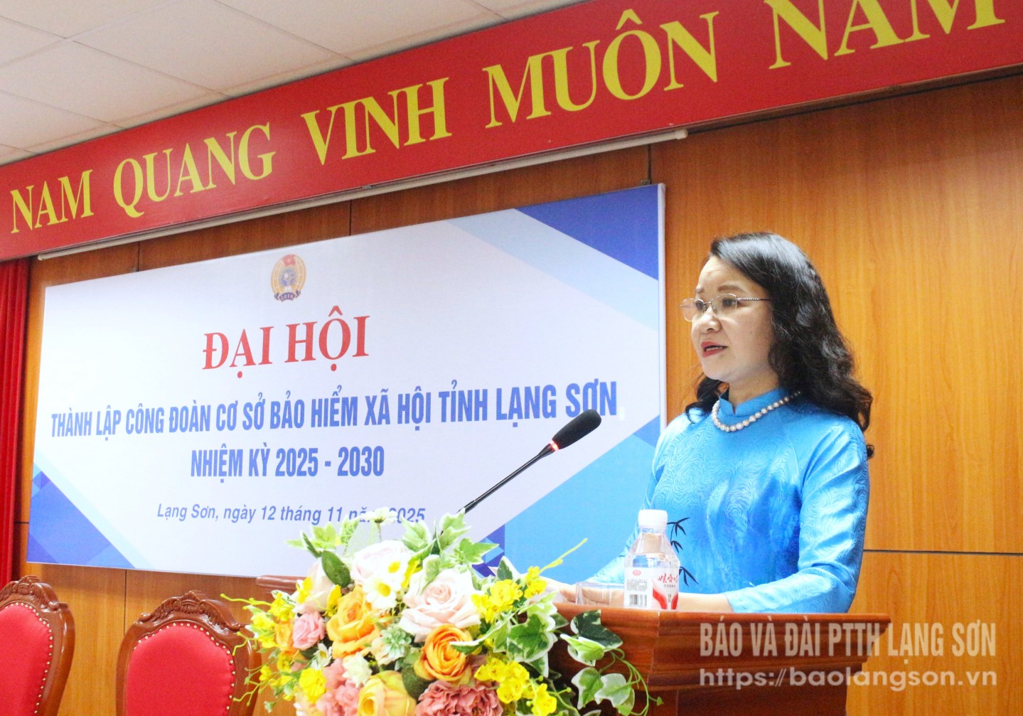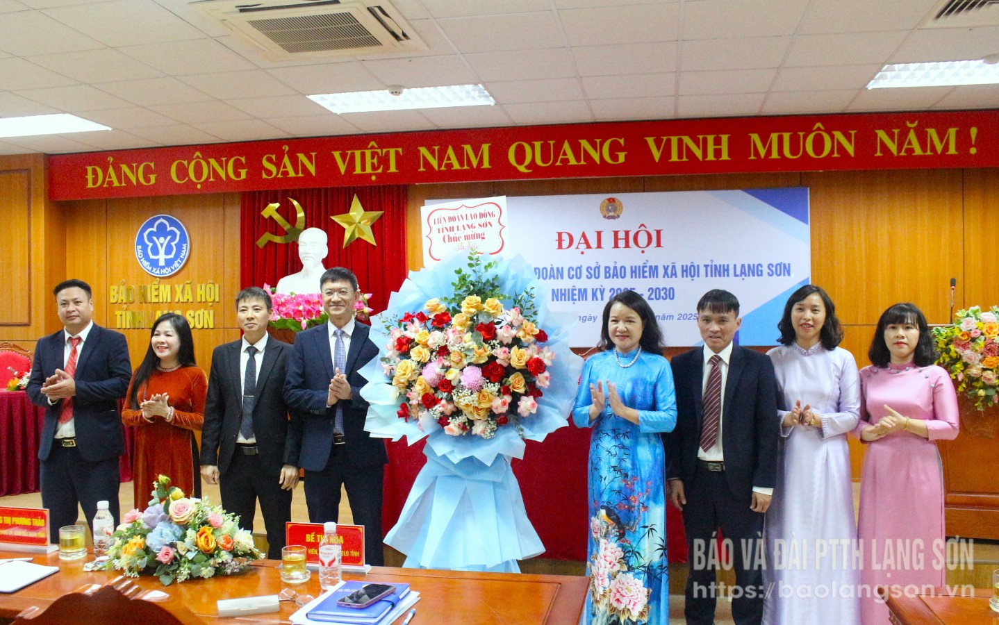 Lãnh đạo Liên đoàn Lao động tỉnh tặng hoa chúc mừng Ban Chấp hành CĐCS BHXH tỉnh khóa I nhiệm kỳ 2025 - 2030
