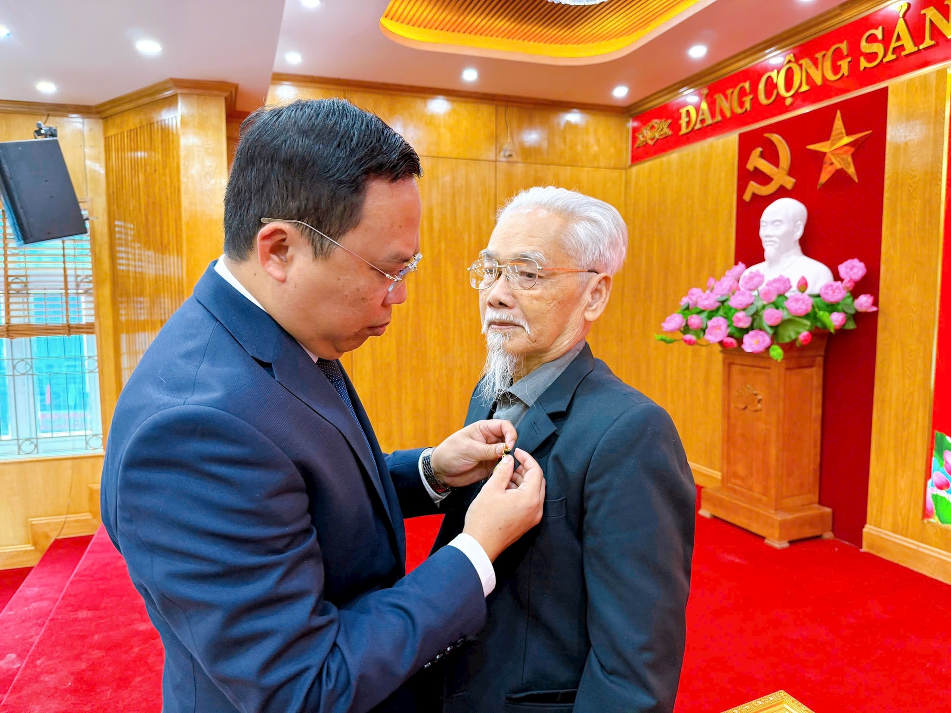 Đại diện các đảng viên được trao Huy hiệu Đảng, đồng chí Nguyễn Phùng Hồng, đảng viên 55 năm tuổi Đảng, Chi bộ tổ dân phố số 7 - Tổng cục V xúc động chia sẻ: "Mỗi Huy hiệu Đảng chính là một mốc son đánh dấu sự trưởng thành và gắn bó của đảng viên với sự nghiệp cách mạng của Đảng, của dân tộc. Dù ở bất kỳ cương vị hay hoàn cảnh nào, các đảng viên lão thành luôn khắc ghi lời thề trước Đảng, tiếp tục giữ vững phẩm chất cách mạng, nêu gương sáng về đạo đức, lối sống, tích cực tham gia xây dựng Đảng, xây dựng chính quyền và đóng góp cho sự phát triển của địa phương".