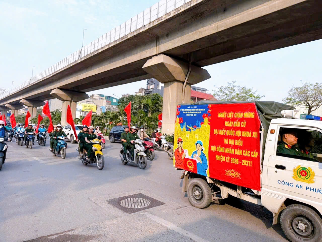 Đoàn tuyên truyền gồm xe ô tô và hàng chục xe máy gắn loa phát thanh, cờ, băng rôn, khẩu hiệu di chuyển qua các tuyến đường chính trên địa bàn phường, tuyên truyền tới nhân dân về ý nghĩa, tầm quan trọng của cuộc bầu cử; quyền và nghĩa vụ của công dân trong việc tham gia bầu cử.