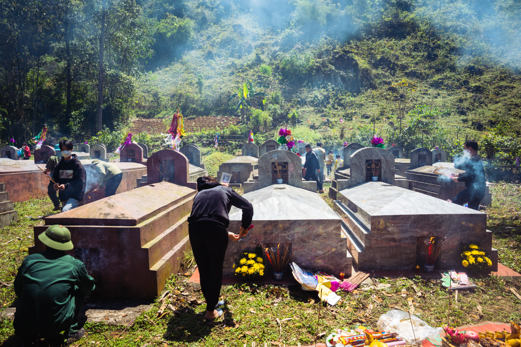 Các phần mộ được dọn dẹp sạch sẽ, phát cỏ, một hành động giản dị nhưng chứa đựng đạo lý “uống nước nhớ nguồn”.
