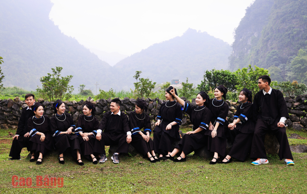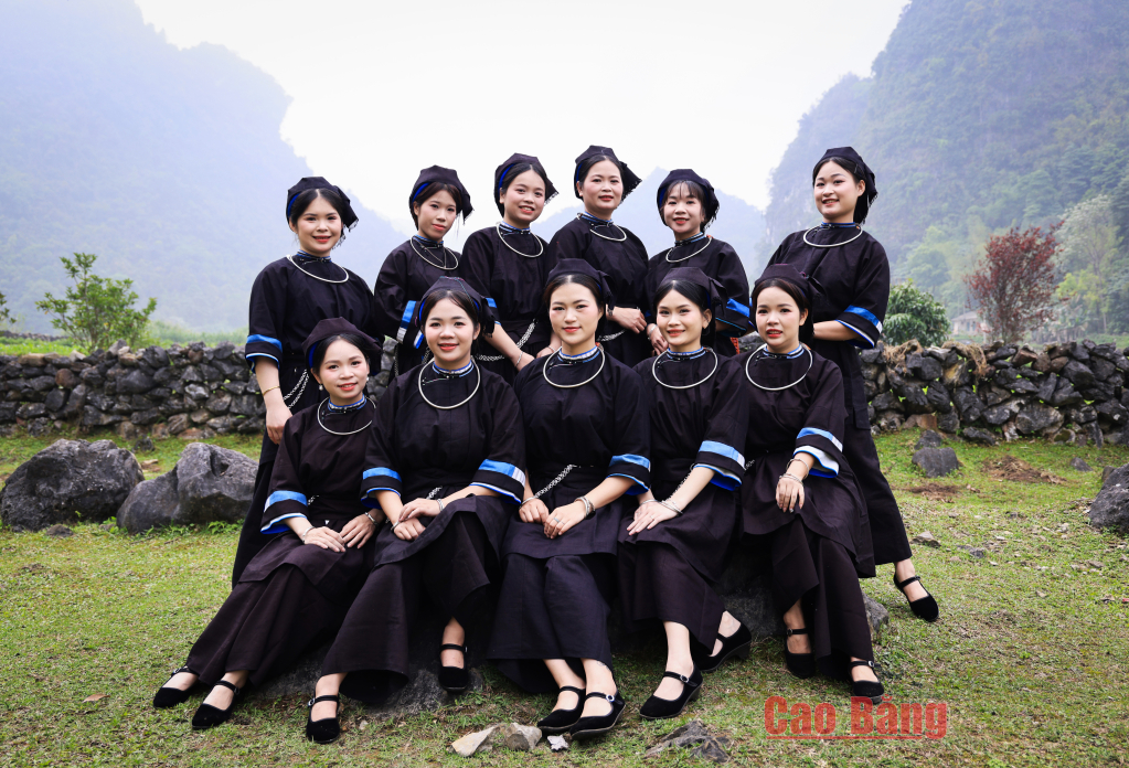 Những cô gái Nùng An trong trang phục dân tộc truyền thống vui trảy hội.
