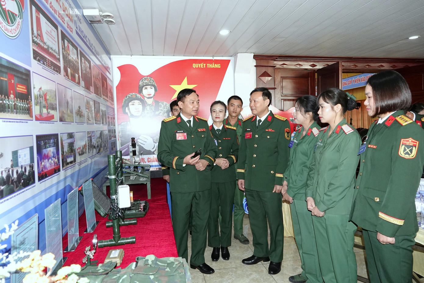 Lãnh đạo Binh chủng Đặc công và Ban Thanh niên Quân đội tham quan khu trưng bày tại hội nghị. Ảnh: Nguyễn Minh