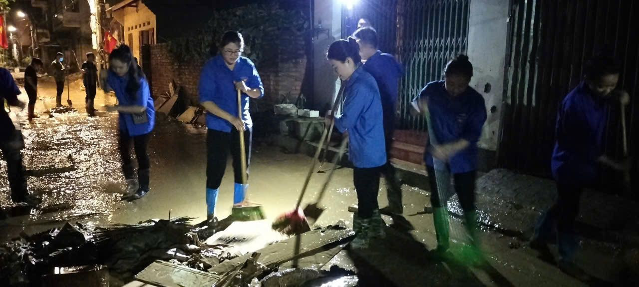 Đông đảo đoàn viên, thanh niên Lạng Sơn có mặt tại những điểm ngập lụt sau lũ rút, khắc phục hậu quả.