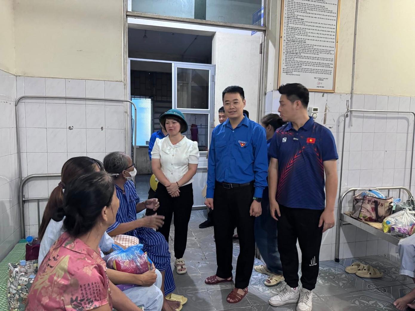 Anh Đoàn Thành Công - Tỉnh ủy viên, Bí thư Tỉnh Đoàn Lạng Sơn thăm hỏi, động viên nhân dân và bệnh nhân ở Hữu Lũng.