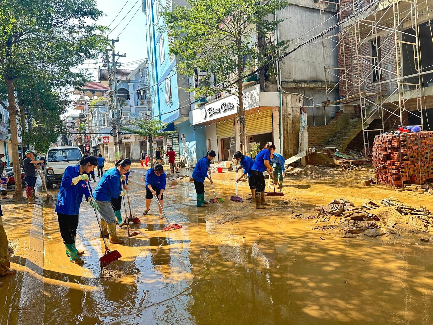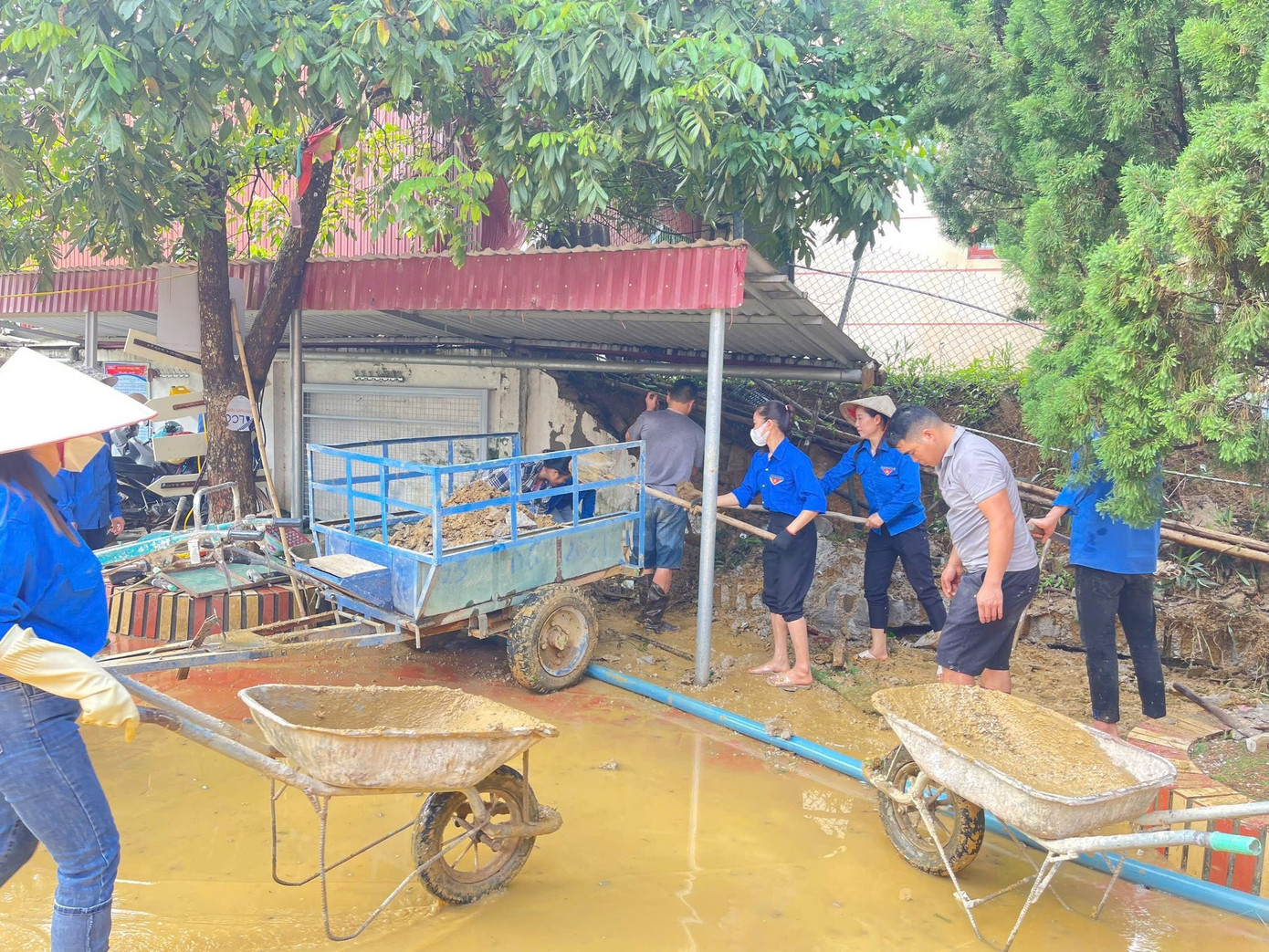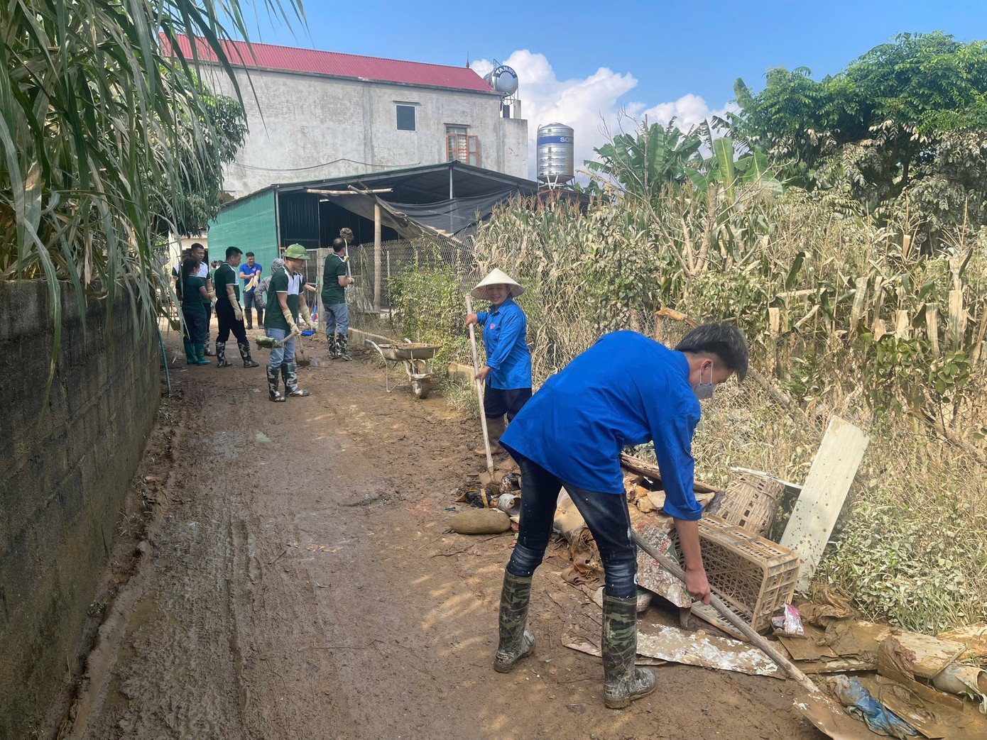 Tuổi trẻ Cao Bằng tích cực vệ sinh, thu gom bùn đất.