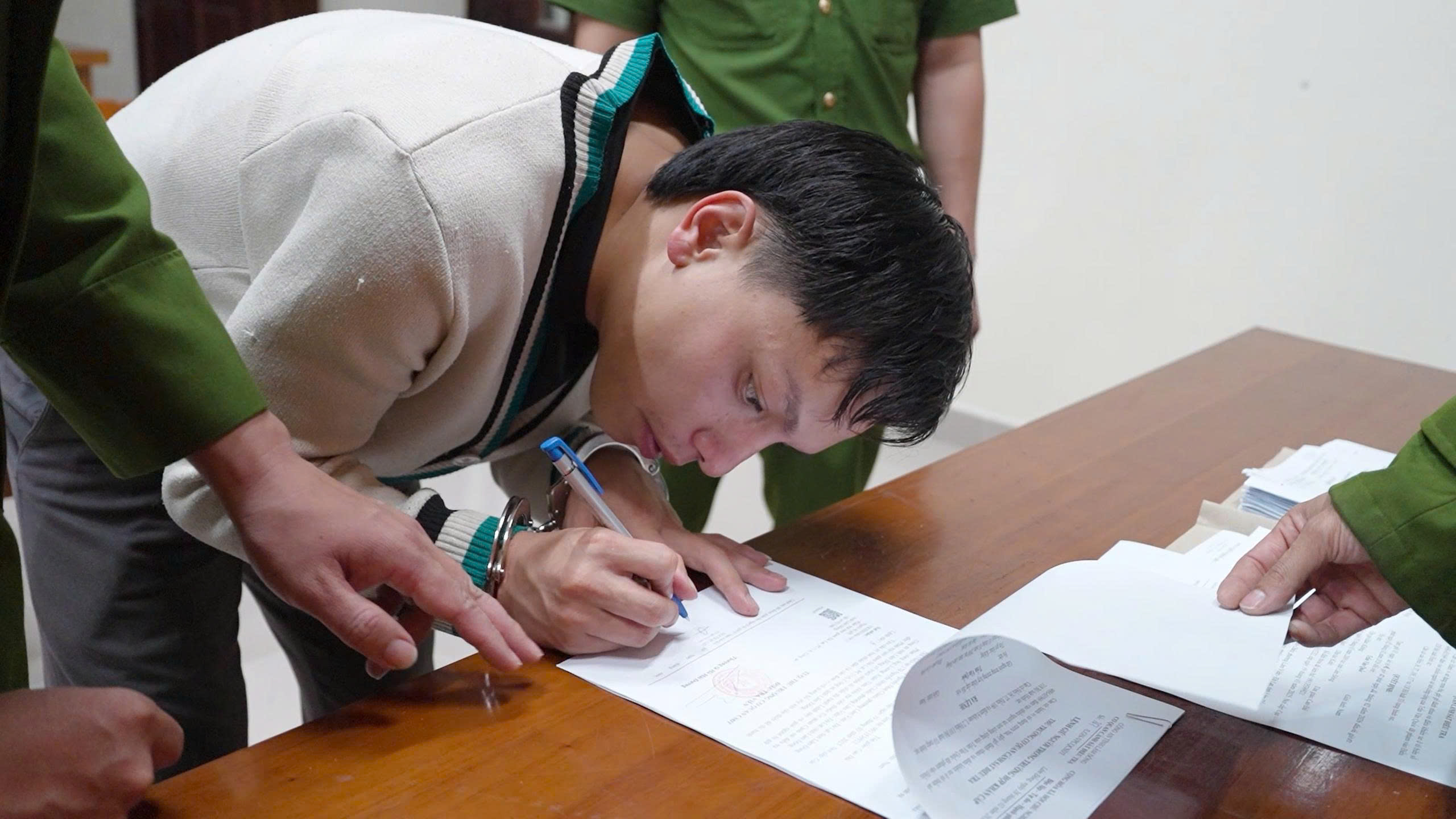 Trần Văn Quốc ký biên bản bị tạm giữ hình sự.