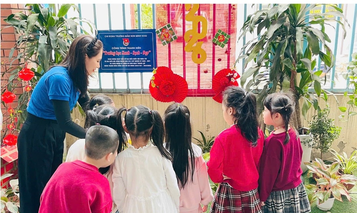 Công trình thanh niên "Trường học Xanh - Sạch - Đẹp" tại Chi Đoàn trường Mầm non Minh Khai (Đoàn thanh niên phường Bạch Mai). Ảnh: CTV