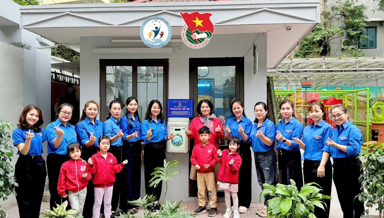 Công trình “Hộp thu gom pin cũ” của Chi đoàn trường Mầm non 8-3 (Đoàn Thanh niên phường Bạch Mai). Ảnh: CTV