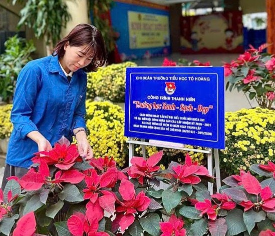 Công trình thanh niên "Trường học Xanh - Sạch - Đẹp" tại Chi Đoàn trường Tiểu học Tô Hoàng (Đoàn Thanh niên phường Bạch Mai). Ảnh: CTV