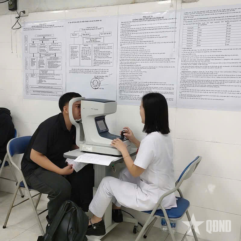 Tổ sơ tuyển sức khỏe nghĩa vụ quân sự phường đã thực hiện đầy đủ các bước sơ tuyển sức khỏe nghĩa vụ quân sự, bao gồm: Khám thể lực tổng quát: Đo chiều cao, cân nặng, huyết áp; khám chuyên khoa mắt: Sử dụng máy đo tật khúc xạ và bảng thị lực; khám nội, ngoại, tai mũi họng và các chỉ số sức khỏe khác. Các y, bác sĩ làm việc với tinh thần trách nhiệm cao, hướng dẫn chu đáo, tạo điều kiện thuận lợi cho thanh niên trong quá trình khám.