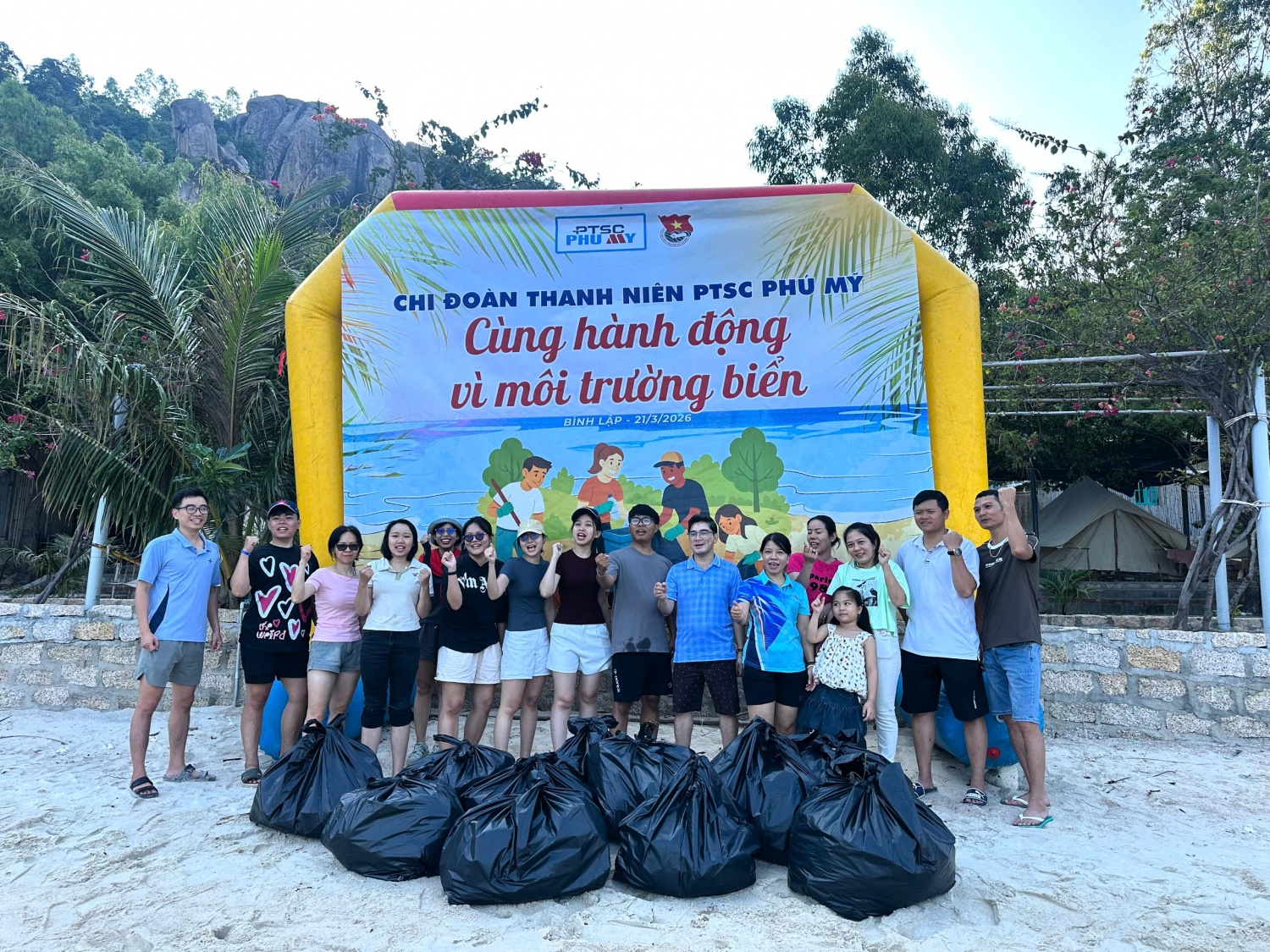 Tiếp nối hành trình, hoạt động “Hành động vì môi trường biển xanh” được triển khai tại ốc đảo Bình Lập. Các đoàn viên đã trực tiếp tham gia thu gom rác thải, làm sạch bãi biển và tuyên truyền ý thức bảo vệ môi trường. Cách tiếp cận trực tiếp, cụ thể giúp nâng cao ý thức trách nhiệm của đoàn viên, đồng thời lan tỏa thông điệp phát triển bền vững gắn với bảo vệ môi trường – một trong những định hướng xuyên suốt của Petrovietnam.