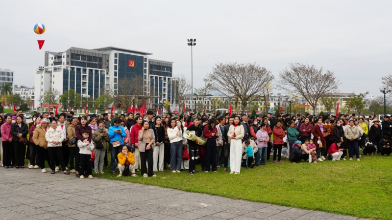Đông đảo nhân dân đến dự lễ giao nhận quân, tiễn con em lên đường nhập ngũ.
