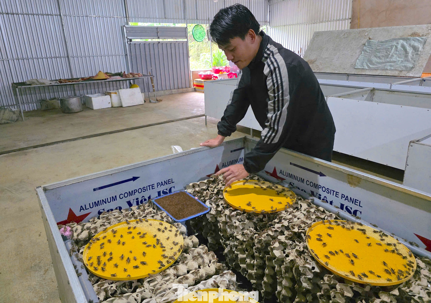 Cẩn thận kiểm tra từng chuồng nuôi dế của mình, anh Phạm Công Văn (SN 1992, quê Hải Phòng, trú xã Mường Quàng, Nghệ An) cho hay, nuôi dế không khó nhưng người nuôi cần phải chăm chút, để ý từng chi tiết nhỏ từ độ ẩm, môi trường sống đến thức ăn thì dế mới phát triển tốt. “Nhiều người sợ nuôi dế khó nhưng không hề khó. Mình chỉ cần chăm chút môi trường sống thì dế nhanh lớn, ít khi bị bệnh”, anh Văn nói và cho hay, dù chỉ mới nuôi 3 năm nhưng hiện anh đã có 40 chuồng nuôi lớn, mỗi năm thu về hơn 400 triệu đồng.