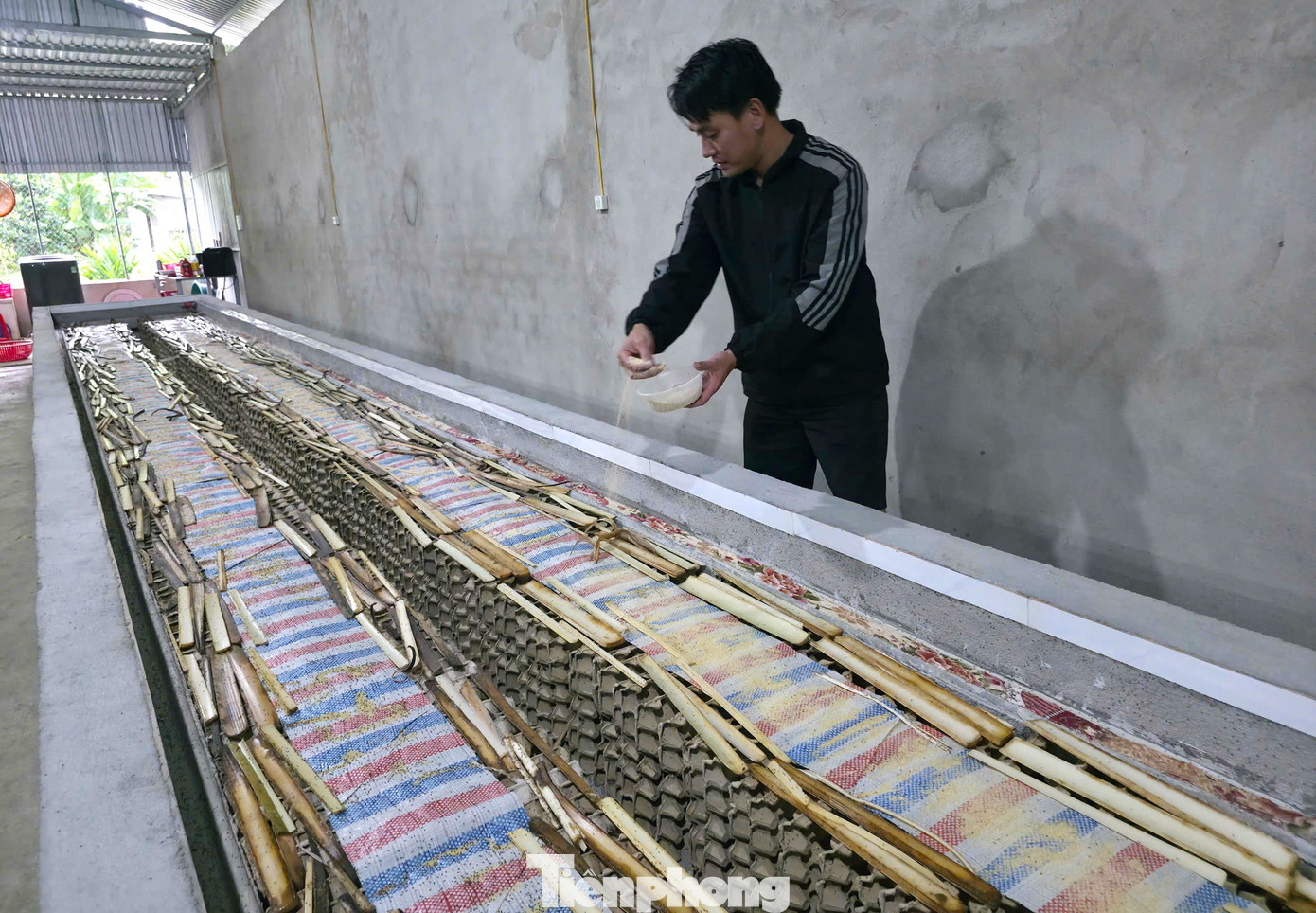 Theo anh Văn, nhiệt độ lý tưởng cho dế phát triển là từ 28-30°C, chuồng nuôi phải khô ráo, thoáng mát, tránh ánh nắng trực tiếp. Thức ăn của dế dễ kiếm và chi phí thấp, chủ yếu là lá sắn, lá chuối, cám ngô, tận dụng nguồn nguyên liệu có sẵn tại địa phương.
