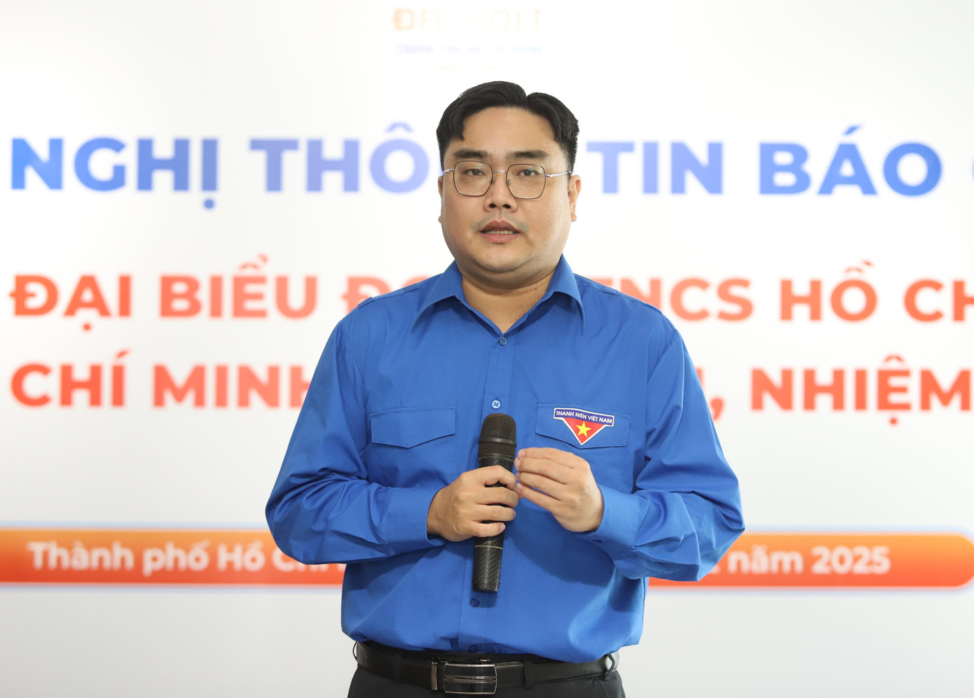 Anh Ngô Minh Hải trao đổi tại buổi công bố thông tin về Đại hội lần thứ nhất Đoàn TNCS Hồ Chí Minh TPHCM. Ảnh: Ngô Tùng