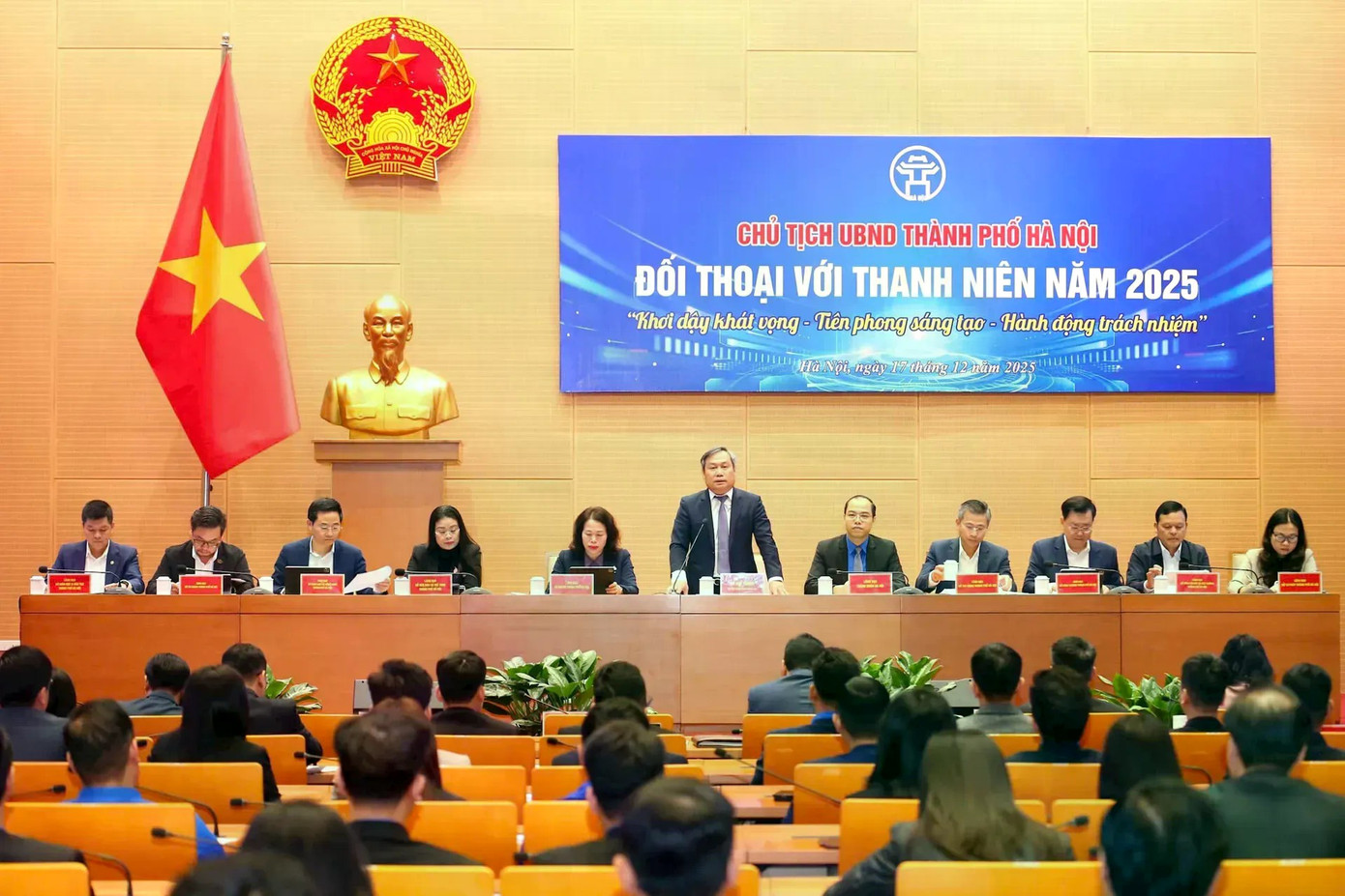 Sáng 17/12, Chủ tịch UBND TP Hà Nội Vũ Đại Thắng chủ trì hội nghị đối thoại với thanh niên Thủ đô năm 2025 với chủ đề: “Thanh niên Thủ đô: Khơi dậy khát vọng - Tiên phong sáng tạo - Hành động trách nhiệm”.