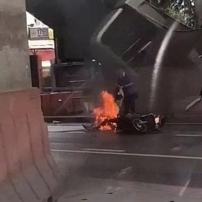 Một chiếc xe sedan màu trắng dừng lại gần đó. Tài xế nhanh chóng lấy một tấm vải từ cốp xe và lao về phía người đàn ông đang bốc cháy. Tuy nhiên, ngọn lửa vẫn bùng cháy dữ dội. Tấm vải gần như không thể ngăn cản ngọn lửa.