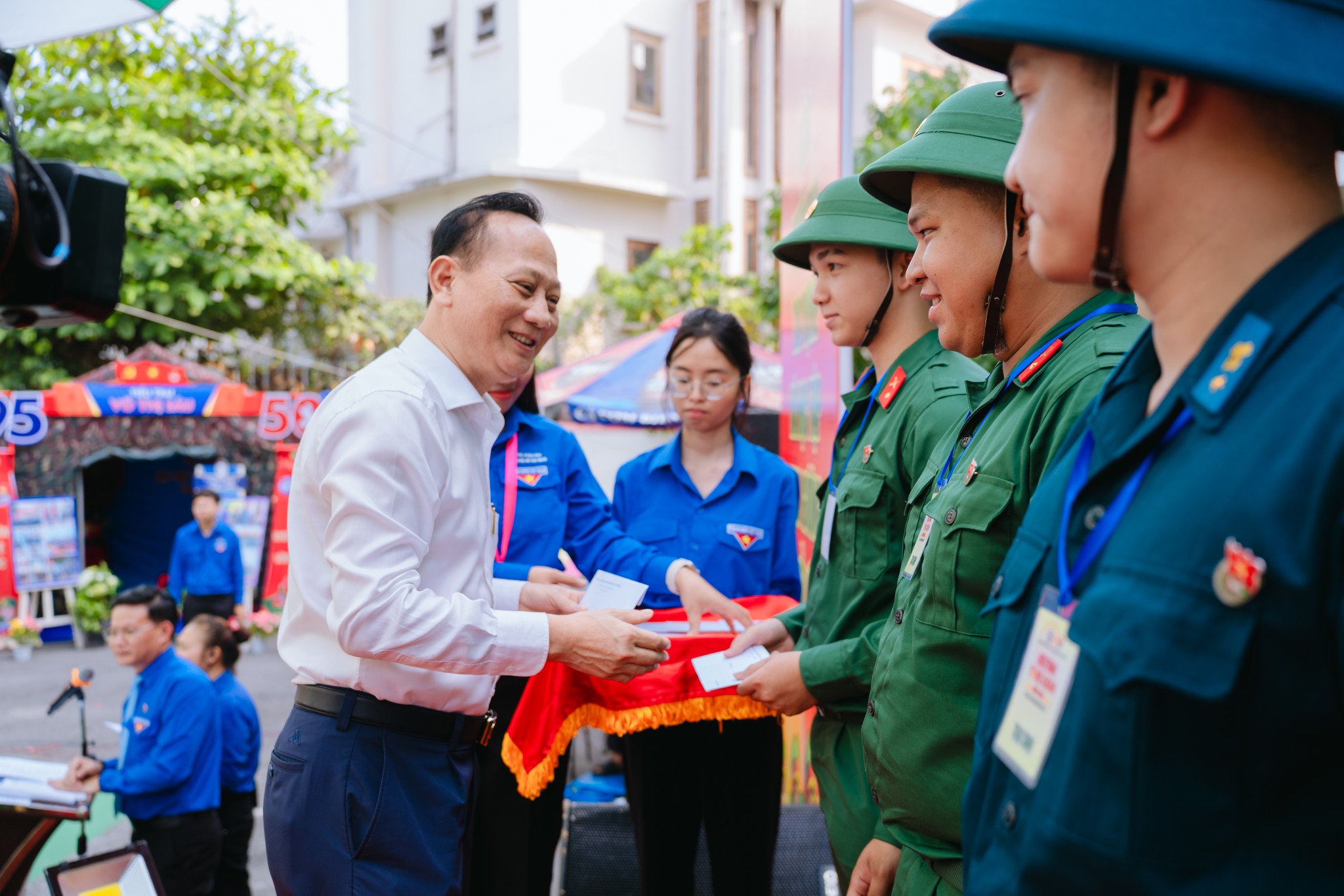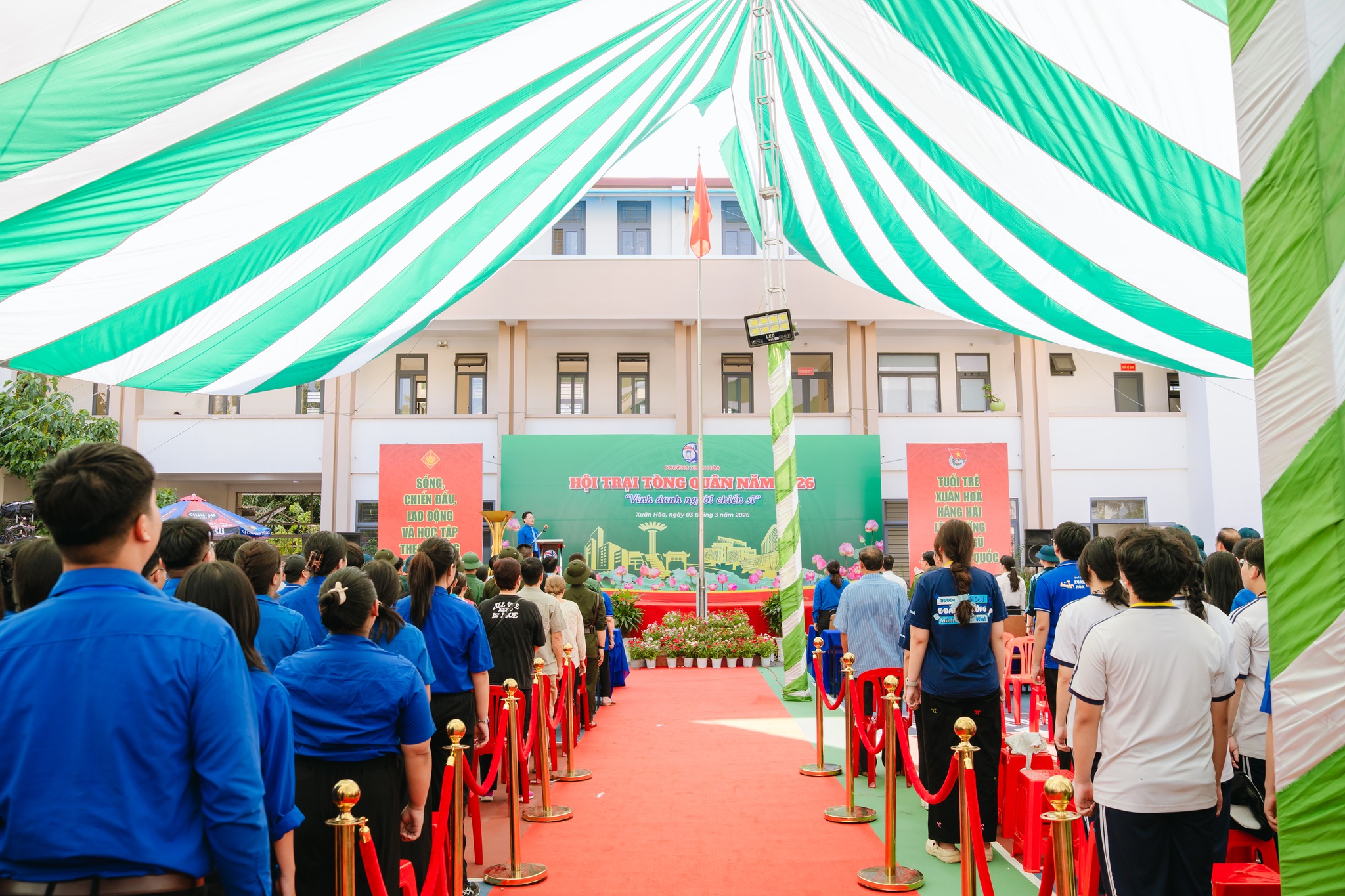 Phát biểu tại buổi lễ, ông Nguyễn Hùng Hậu, Phó Bí thư Đảng ủy, Chủ tịch UBND phường, Chủ tịch Hội đồng Nghĩa vụ quân sự phường, Trưởng ban tổ chức hội trại, nhấn mạnh công tác giáo dục truyền thống, bồi dưỡng lý tưởng cho thế hệ trẻ trước khi lên đường thực hiện nghĩa vụ. Đại diện thanh niên trúng tuyển, đảng viên trẻ Nguyễn Hoàng Cao Trí chia sẻ quyết tâm hoàn thành nhiệm vụ.