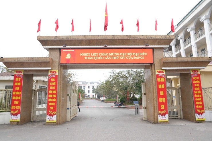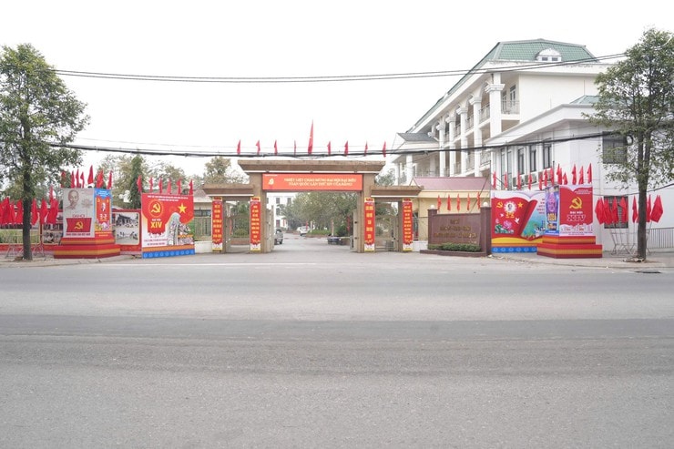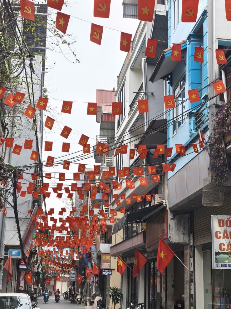 Tại Thanh Oai, sắc đỏ của cờ Tổ quốc, băng rôn, khẩu hiệu tuyên truyền rực rỡ khắp các tuyến đường, cơ quan. Ảnh: Nguyễn Lý