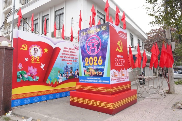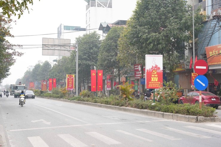 Tại Thanh Oai, sắc đỏ của cờ Tổ quốc, băng rôn, khẩu hiệu tuyên truyền rực rỡ khắp các tuyến đường, khu dân cư, trụ sở cơ quan... Ảnh: Nguyễn Lý