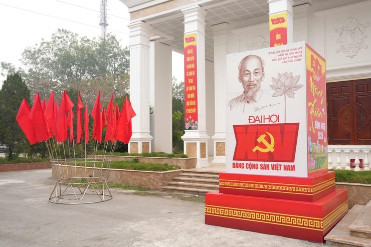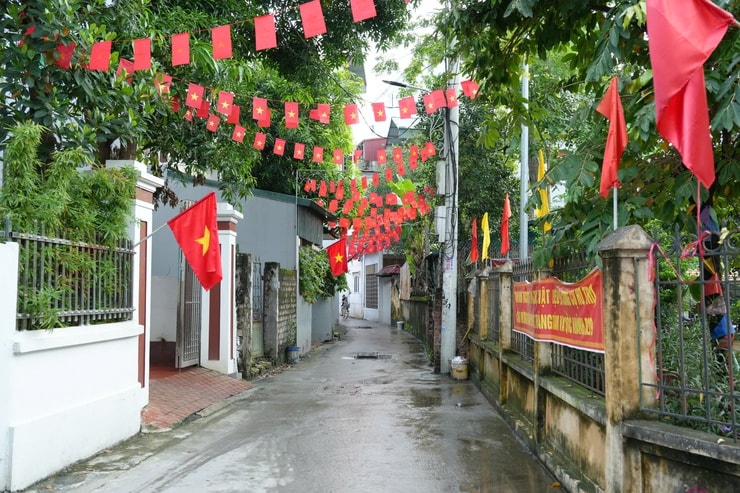 Sắc đỏ của cờ Tổ quốc, băng rôn, khẩu hiệu tuyên truyền rực rỡ khắp các tuyến đường, cơ quan trên địa bàn xã Thanh Oai. Ảnh: Nguyễn Lý