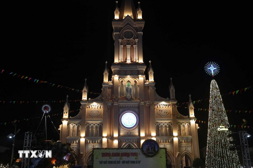 Nhà thờ chính tòa Đà Nẵng được trang hoàng lung linh đón Giáng sinh 2025. (Ảnh: Trần Lê Lâm/TTXVN)