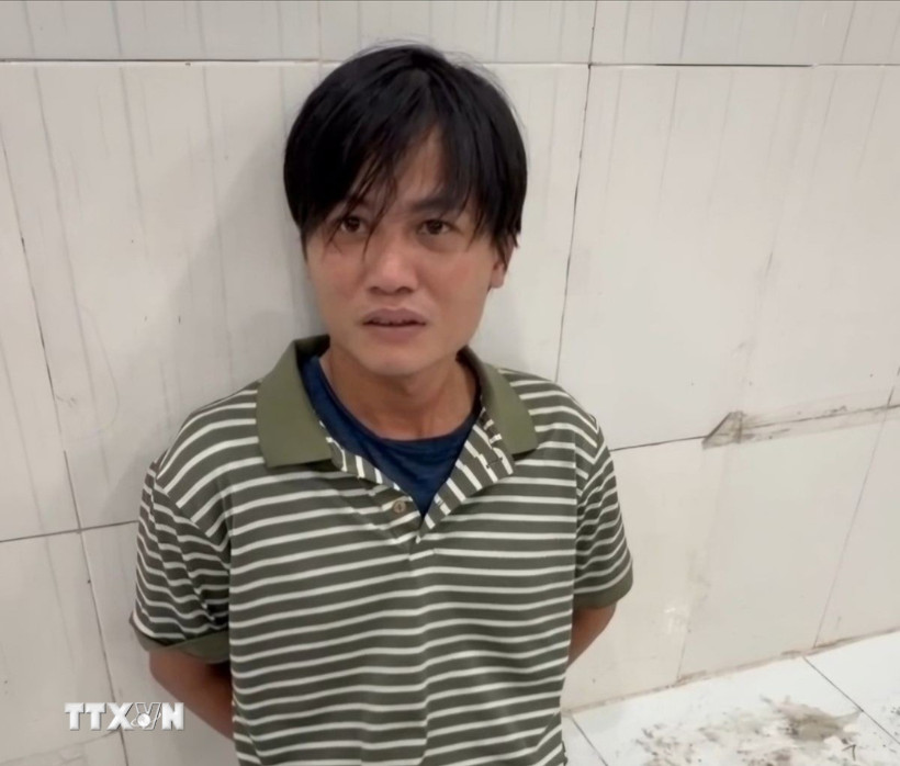Đối tượng Trần Minh Tân tại Cơ quan Công an. (Ảnh: TTXVN phát)