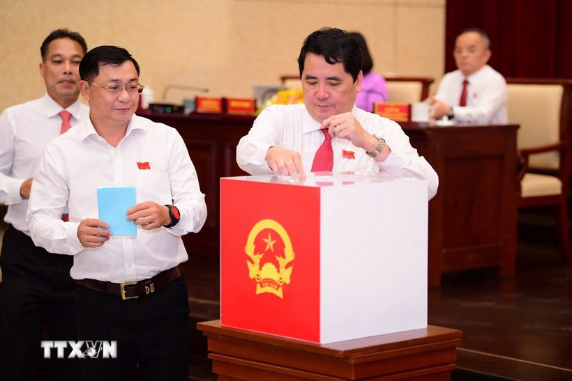 Các đại biểu bỏ phiếu bầu chức danh Phó Chủ tịch HĐND Thành phố Hồ Chí Minh. (Ảnh: Hữu Duyên/TTXVN)