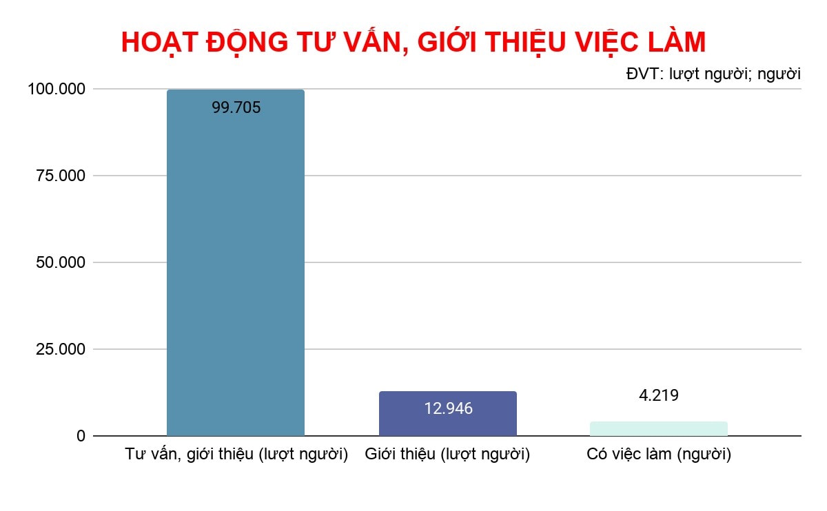 Bằng các hoạt động tư vấn, giới thiệu việc làm, quý 1/2026 Trung tâm Dịch vụ việc làm Thành phố Hồ Chí Minh đã thực hiện tư vấn, giới thiệu việc làm cho 99.705 lượt người, trong đó 12.946 lượt người được giới thiệu việc làm. Thông qua các hoạt động kết nối việc làm, 4.219 người lao động đã tìm được việc làm, tương ứng tỷ lệ 32,59% trên tổng số người được giới thiệu việc làm.