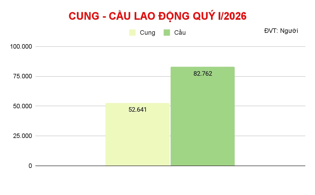 Trong quý 1/2026, Trung tâm Dịch vụ việc làm Thành phố Hồ Chí Minh thu thập được 82.762 vị trí việc làm trống từ nhu cầu tuyển dụng của các doanh nghiệp; 52.641 người lao động có nhu cầu về việc làm.
