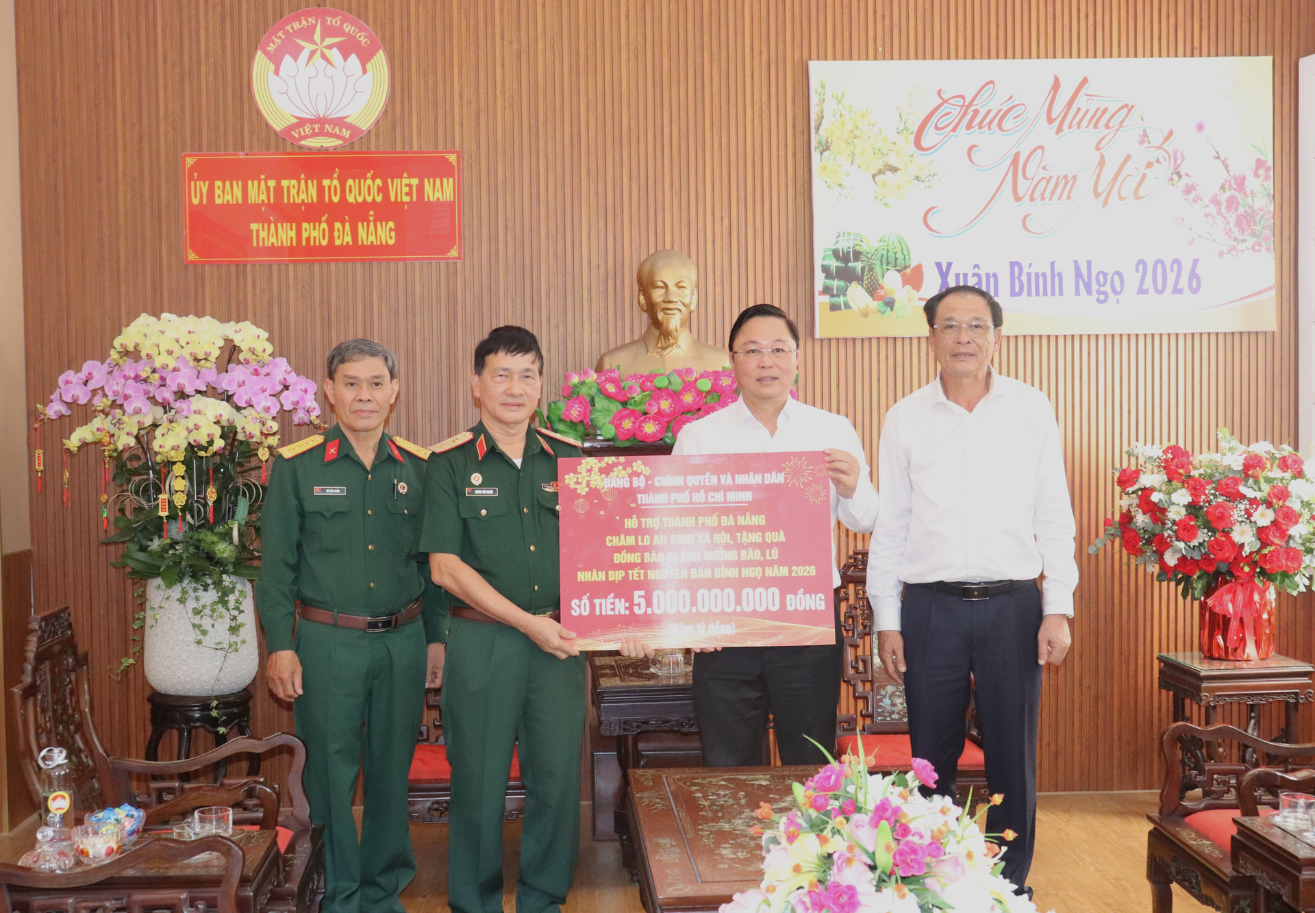 Dịp này, Thành phố Hồ Chí Minh trao 5 tỷ đồng hỗ trợ tỉnh Quảng Ngãi và 10 tỷ đồng cho thành phố Huế để chăm lo đồng bào bị ảnh hưởng thiên tai đón Tết nguyên đán Bính Ngọ 2026.