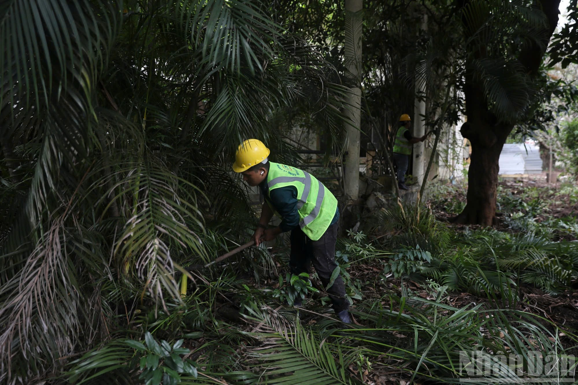 Cây cỏ mọc um tùm đã được công nhân phát hoang, dọn dẹp để trả lại mặt bằng.