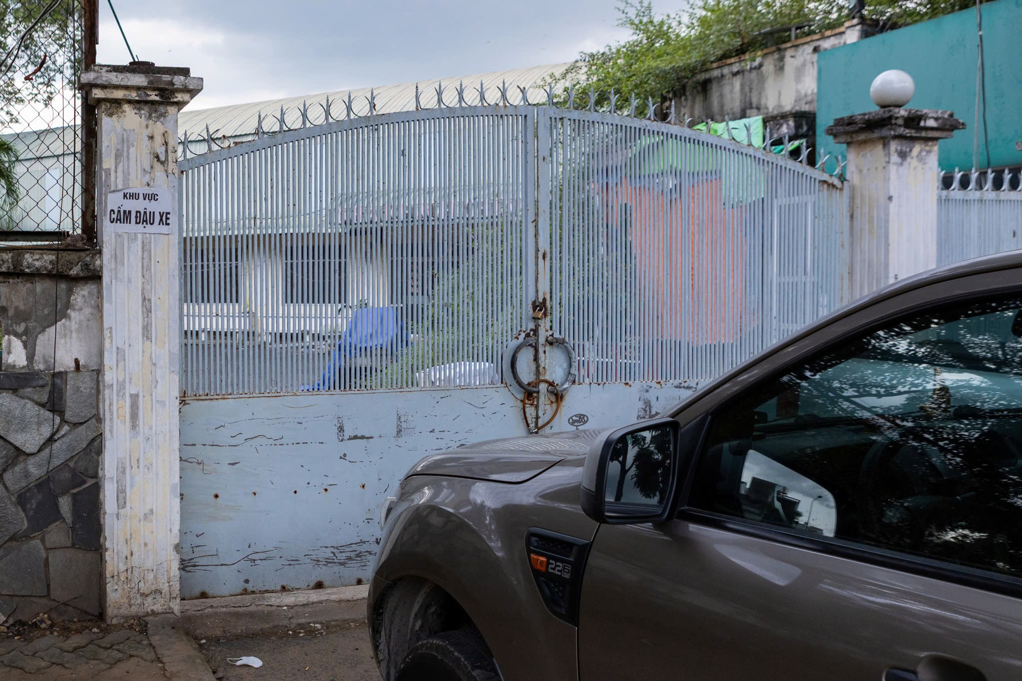 Cổng đóng then cài suốt 8 năm khiến khu vực bên ngoài trở thành nơi đậu xe của người dân, dù có biển cấm.