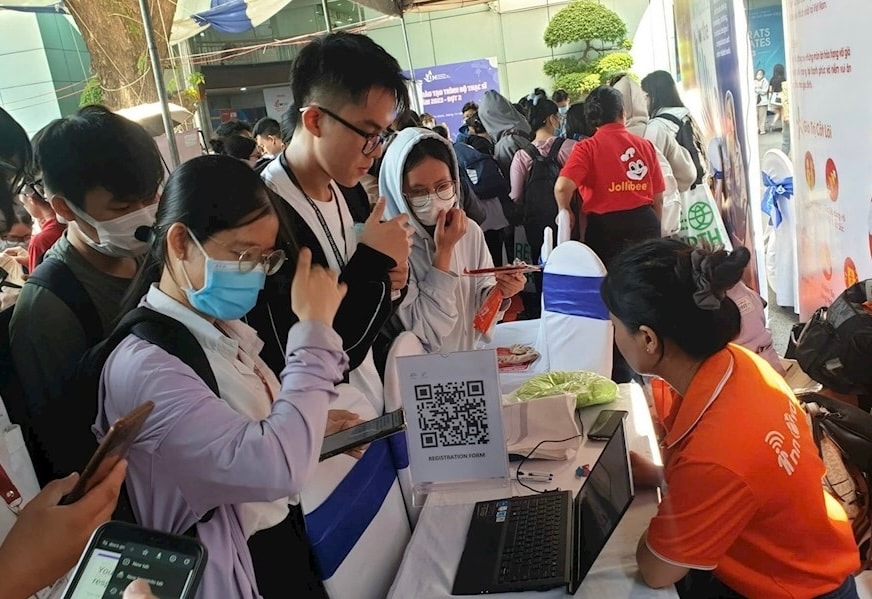 Ngày hội giới thiệu việc làm giúp sinh viên, người lao động tìm kiếm công việc phù hợp. Ảnh TUTPHCM