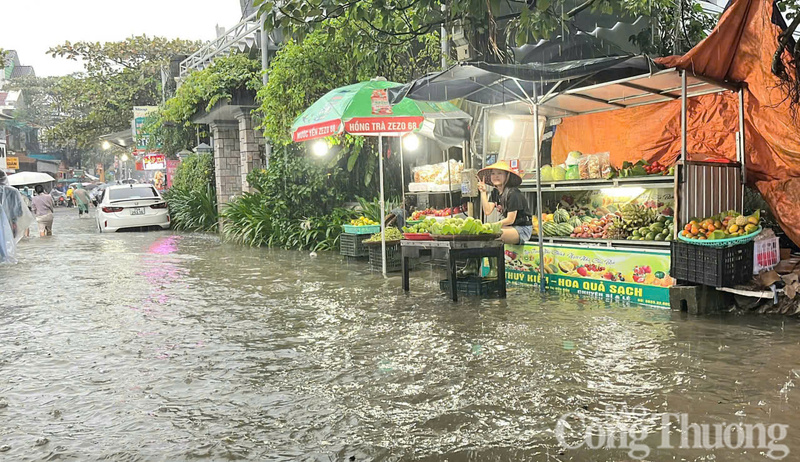 Cửa hàng kinh doanh trái cây bên dòng nước lũ