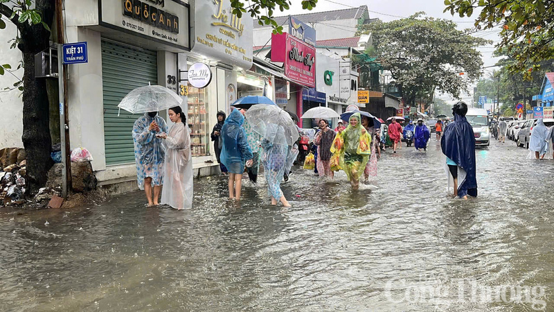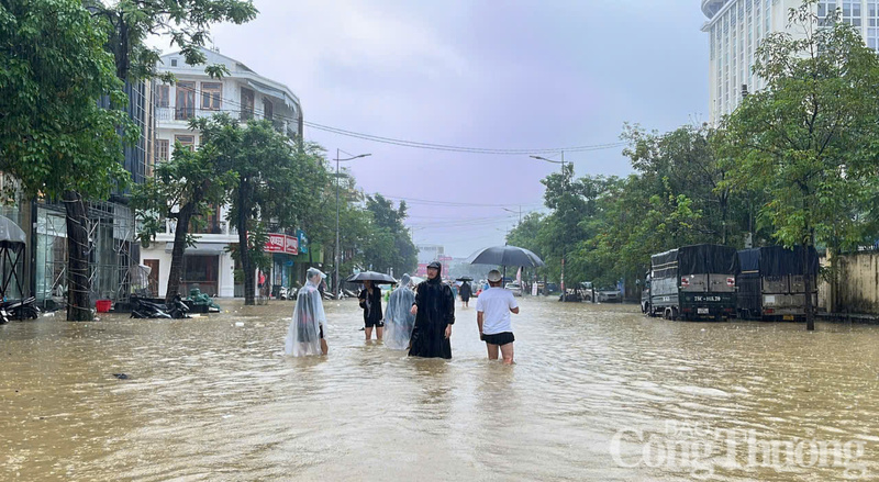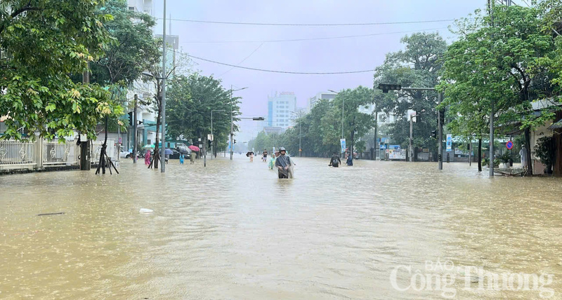 Nhiều tuyến phố chính ở thành phố Huế ngập sâu, giao thông tê liệt
