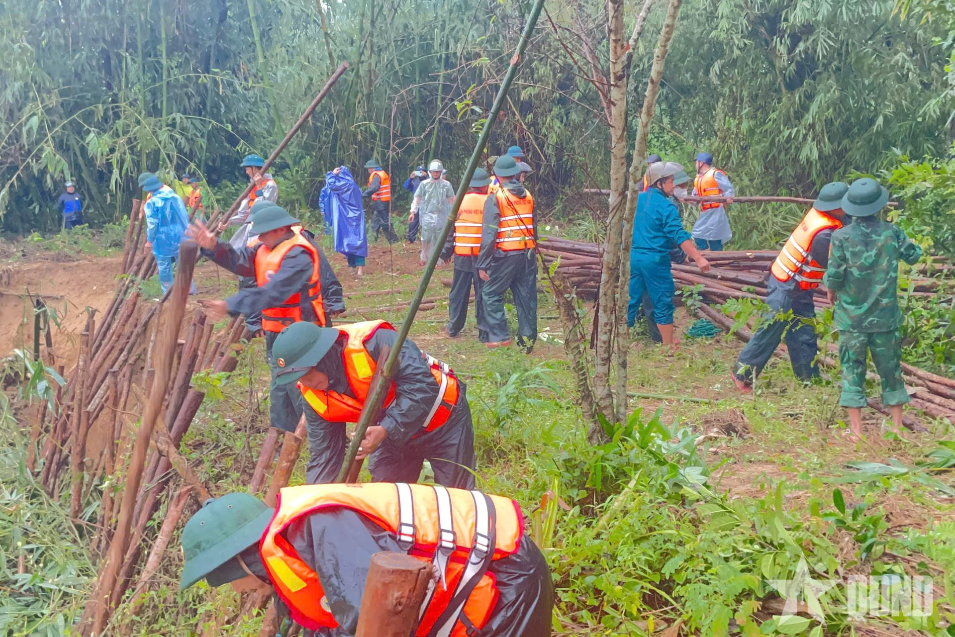 Các lực lượng đã huy động phương tiện, sử dụng các vật liệu như: Cọc gỗ, bạt, đất, đá để đắp, củng cố đoạn bờ bị sạt, kịp thời ngăn chặn nguy cơ sạt lở lan rộng, bảo đảm an toàn cho khu dân cư lân cận.