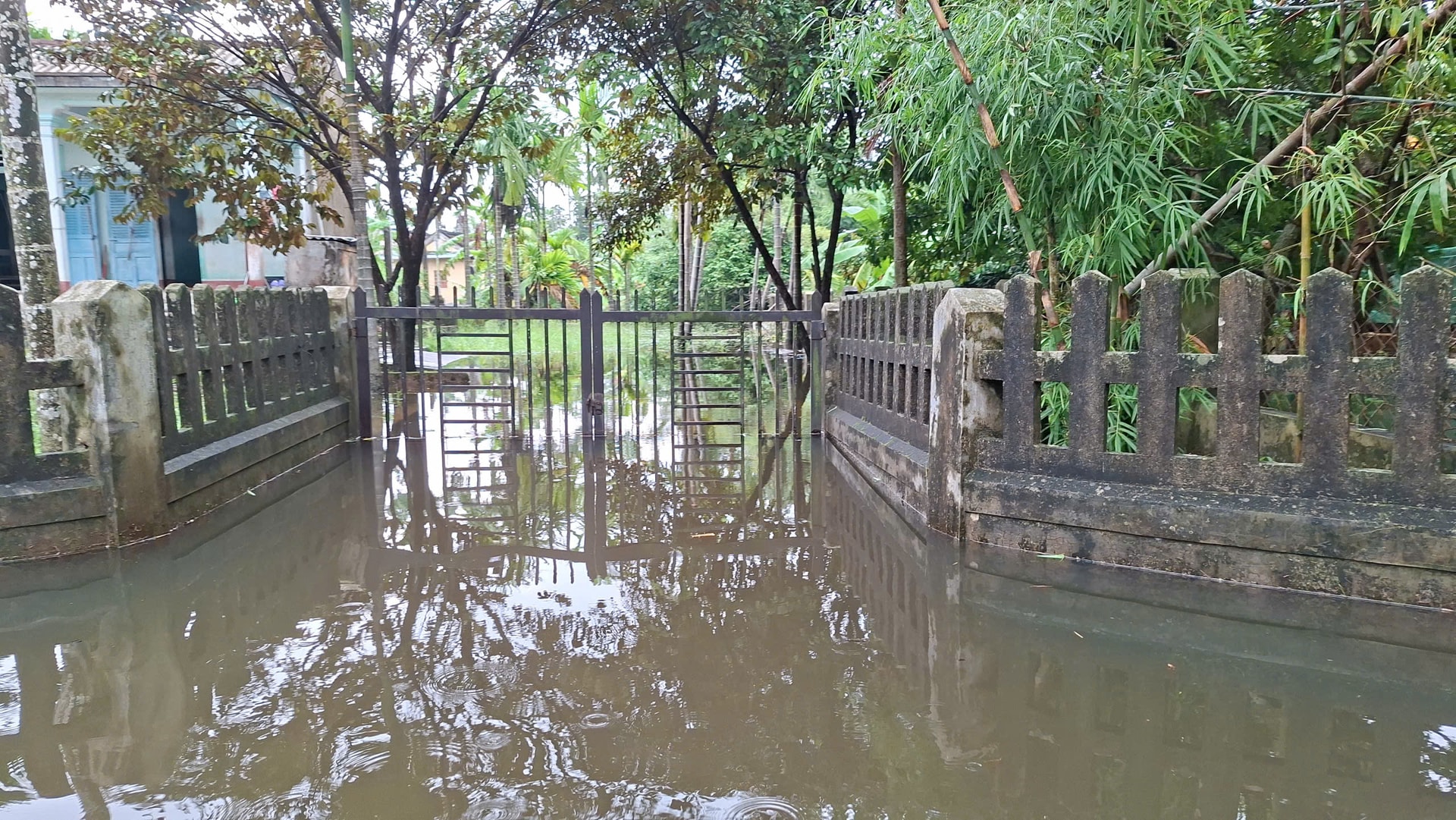 Thôn Xuân Tùy, xã Đan Điền vẫn còn ngập nước sâu.